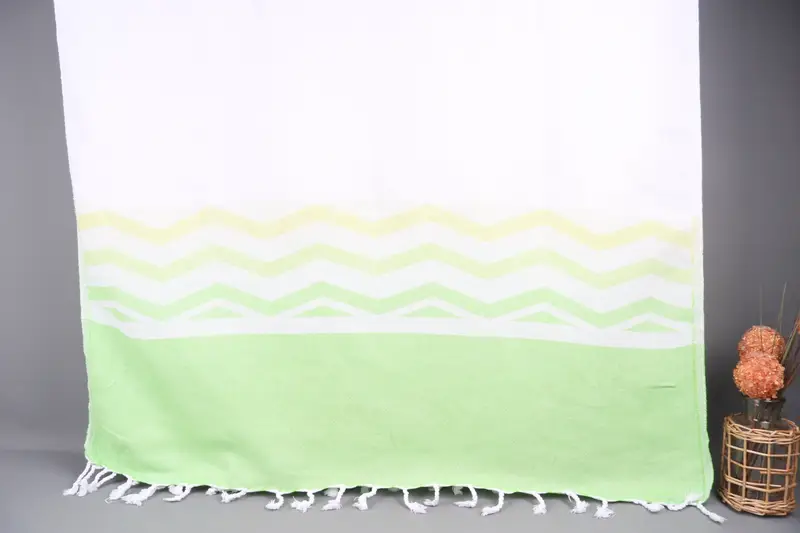 Dimensions specify the towel's versatility, being adaptable to various uses from kitchen to beach. Coupled with a hand-weaving process, this results in slight variations, enhancing the uniqueness of each piece.