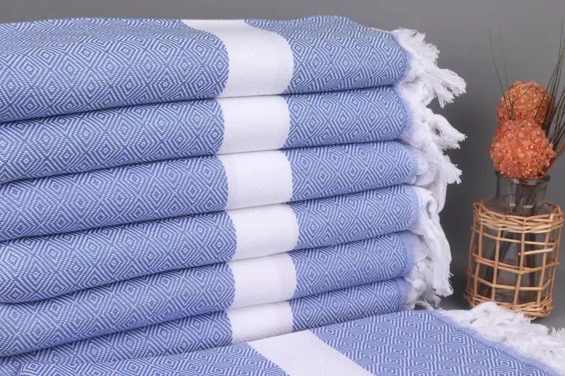 Turkish cotton beach towels are characterized by their exceptional fiber composition and absorbency. Each towel, crafted from high-quality organic cotton yarn, ensures durability and superior comfort. Hand-weaving techniques result in a product that can be slightly larger or smaller by up to 2 inches or 5 centimeters.