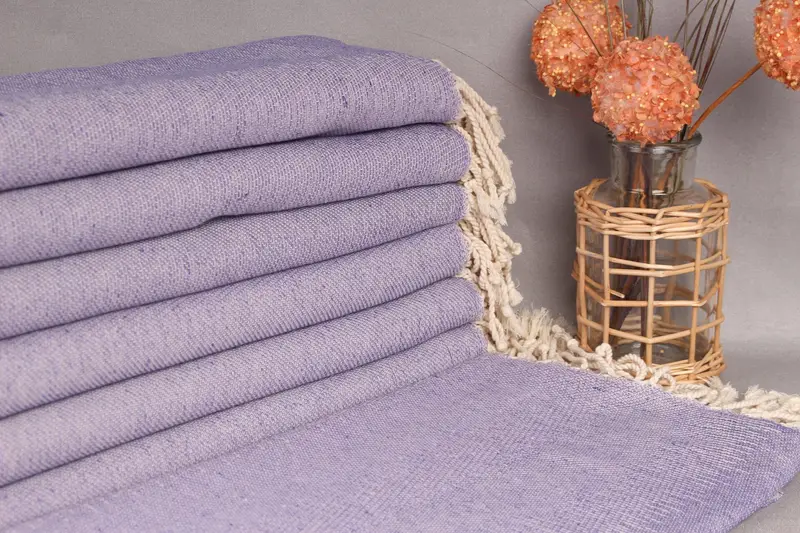 The Turkish Bath Towel is characterized by its fiber composition, primarily utilizing organic cotton yarn. Ensuring durability and soft texture, this material enhances absorbency, making it suitable for diverse applications. Weighing 380 grams, this flat towel spans dimensions of 40x71 inches (100x180 centimeters), with a tolerance of 2 inches (5 centimeters) due to hand-weaving techniques.