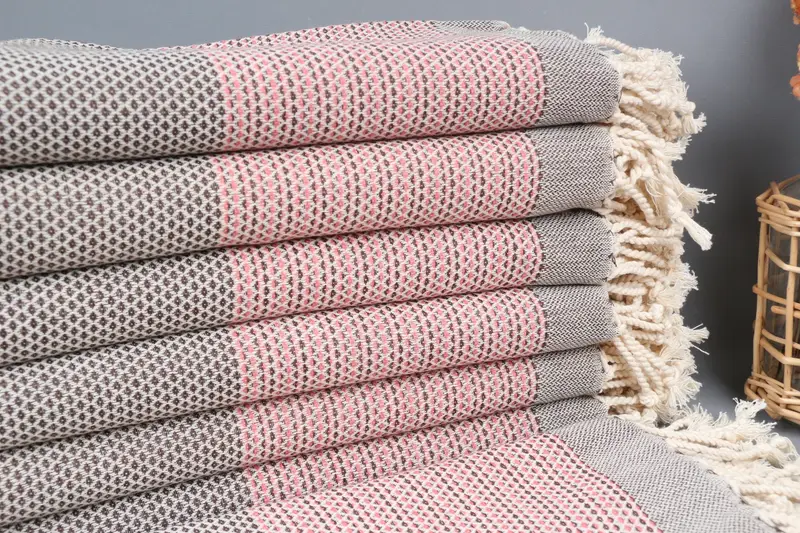 Turkish towels are woven from organic cotton yarns, ensuring a soft and durable material characterized by high absorbency. Dimensions for these towels are 40x71 inches (100x180 centimeters) with a hand-weaving tolerance of up to 2 inches (5 centimeters). Each towel weighs 340 grams, pre-shrunk to avoid shrinkage after washing. Embroidery customization allows for personalized gifts, with orders shipped globally within 3-5 days via FedEx, DHL, or UPS. Returns and exchanges are accepted, prioritizing customer satisfaction.