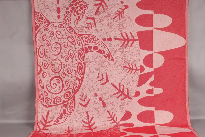 Characterized by its organic cotton yarn composition, the 40x71 inches red cotton towel ensures superior absorbency and durability. Resulting from traditional hand-weaving techniques, it weighs 400 grams and measures 100x180 centimeters, with a tolerance of 2 inches (5cm).