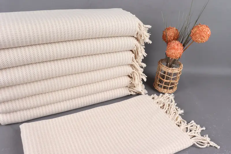 Organic cotton yarn ensures high quality and eco-friendliness, resulting in a towel characterized by superior absorbency and softness. Measuring 40x71 inches (100x180 centimeters) and weighing 340 grams, this handmade Turkish towel allows for a 1-2.5 cm tolerance in size due to weaving techniques. Embroidery customization, pre-shrunk status, and hassle-free shipping and return policies are provided, with worldwide delivery within 3-5 days. Orders over 35 USD receive free shipping via FedEx, DHL, or UPS.