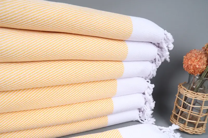 Organic cotton yarn ensures high-quality craftsmanship and superior absorbency in the Turkish towels, resulting in an ideal selection for diverse applications. Measuring 40x71 inches (100x180 cm) with a tolerance of 2 inches (5 cm), each towel weighs 400 grams. The hand-weaving process allows for minor variations in dimensions.