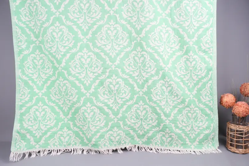 Turkish towels are made from organic cotton yarn, ensuring natural absorbency and durability. Characterized by a hand-woven construction, each towel measures 36x67 inches (90x170 centimeters) with a tolerance of up to 2 inches (5 cm) in size due to the weaving process. Weighing 340 grams, these towels are multi-purpose and pre-shrunk for added convenience.