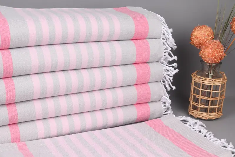 These Turkish beach towels are woven from high-quality organic cotton yarn, ensuring durability and softness. Each towel measures 40x71 inches (100x180 centimeters) and weighs 260 grams, with a hand-weaving tolerance of up to 5 cm in either direction. Customization options include embroidery of names or logos on the towels, allowing for personalized gifts suitable for various occasions. The towels are pre-shrunk and should be washed before first use. Orders over $35 qualify for free shipping, and international customers will receive their towel...