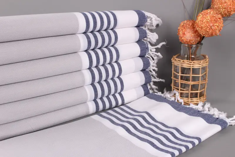 The Turkish Beach Towel is characterized by its superior organic cotton yarn composition, ensuring softness and breathability. This product measures 40x71 inches (100x180 centimeters) with a 280-gram weight, featuring a margin of weaving tolerance of up to 2 inches (5 centimeters). It allows for customization with embroidery, offering personalization options for special occasions, and includes pre-shrunk properties that enhance its durability. Towels are meticulously shipped with a focus on timely delivery and provide hassle-free return options...
