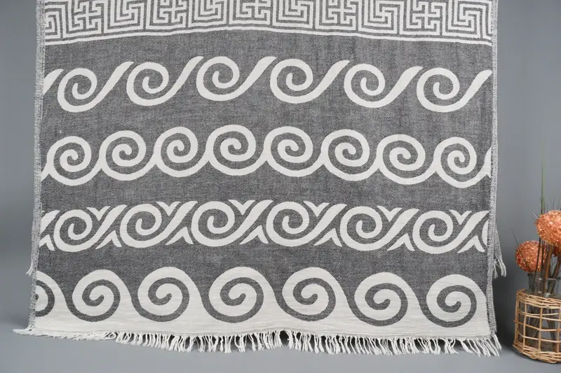 This Turkish towel is meticulously crafted from organic cotton yarn, ensuring a sustainable and high-quality material choice. The towel is characterized by its dimensions of 36x71 inches (90x180 centimeters), with a weight of 310 grams. Due to the hand-weaving techniques, variations in size of up to 2 inches (5 centimeters) may occur.