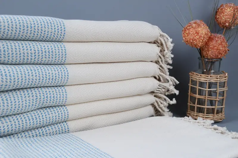 Organic cotton yarn ensures superior absorbency and durability for the Turkish towels, resulting in a lightweight yet robust textile. The towels measure 40x71 inches (100x180 centimeters) and weigh 450 grams, with a hand-weaving tolerance of up to 2 inches (5 centimeters). Personalized embroidery, pre-shrunk status, and a shipping policy that offers free delivery for orders over 35 USD characterize the customization and logistics offerings. Orders are pre-washed before shipping, ensuring they become softer with each wash. US-based orders fulfil...