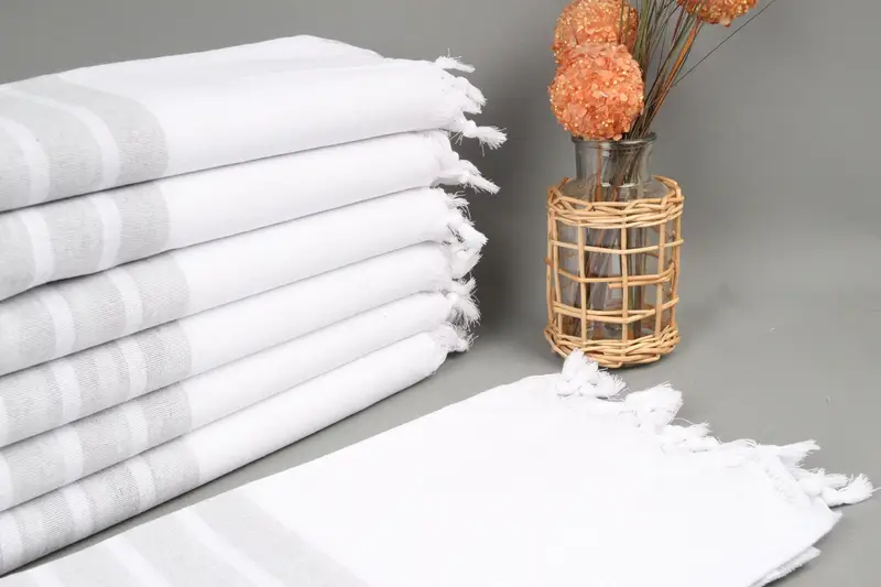 Characterized by its durable fiber composition, the Turkish Beach Towel comprises organic cotton yarn, ensuring superior absorbency. The product is dimensioned at 40x71 inches (100x180 centimeters) with a weight of 220 grams, resulting in a lightweight yet substantial texture. Hand-weaving tolerances allow for a variation of 1-2.5 centimeters in size.