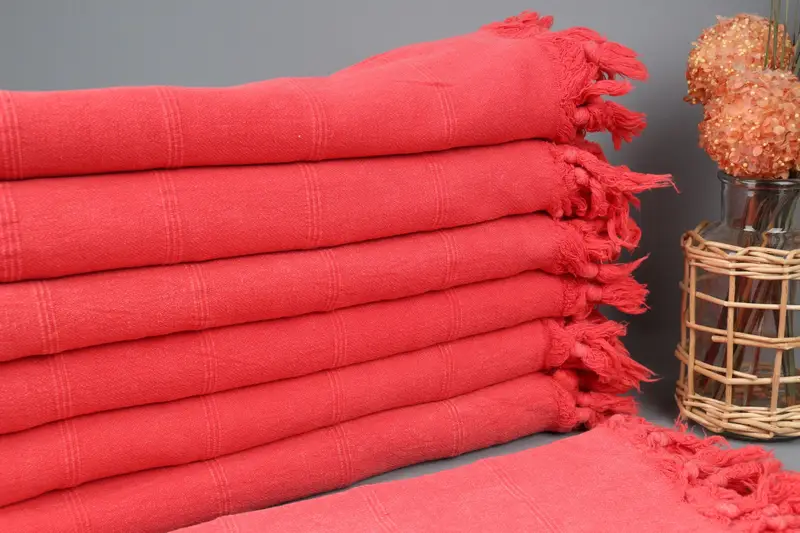Turkish beach towels are characterized by their organic cotton yarn composition, ensuring superior absorbency and quality. Measuring 36x67 inches (90x170 cm) with a tolerance of 2 inches (5 cm) due to hand-weaving, these towels weigh approximately 370 grams. Both sides of the towels are suitable for multiple uses, including kitchen, bath, baby, beach, travel, yoga, and more.