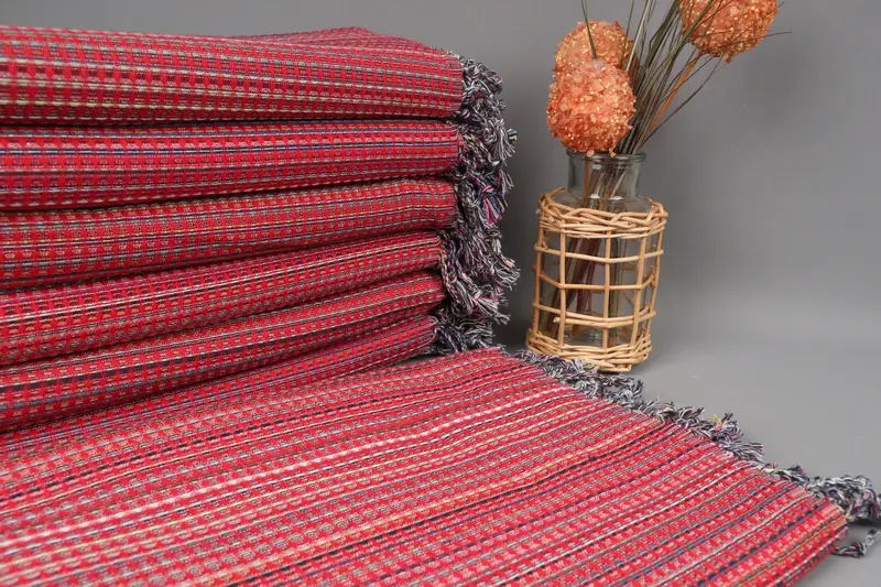 Handwoven Turkish bath towels are characterized by their organic cotton yarn construction, ensuring superior absorbency and durability. Specified at 40x71 inches (100x180 centimeters) with a tolerance of 2 inches (5 cm), each towel weighs 380 grams. These towels are versatile, suitable for various uses, and can be embroidered with personalized text or logos upon request.