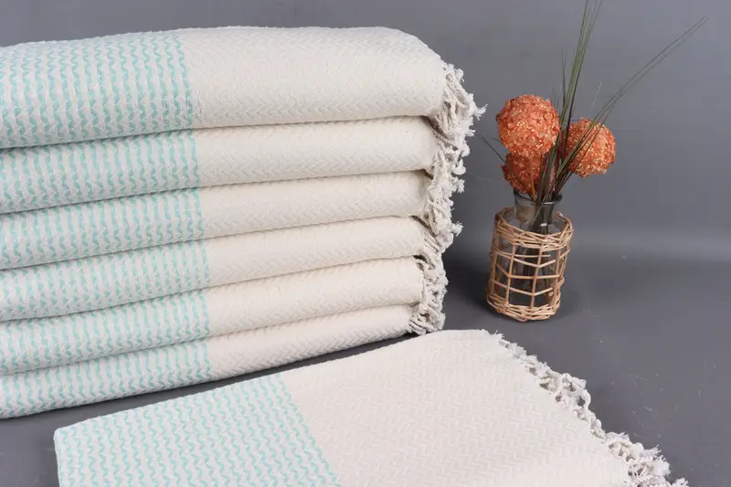 The personalized Turkish towel is woven from organic cotton yarn, ensuring a natural and soft texture. Characterized by meticulous hand-weaving, it measures 40x77 inches (100x195 centimeters) with a weight of 390 grams, providing durability while accommodating weaving tolerances of up to 2 inches (5cm).