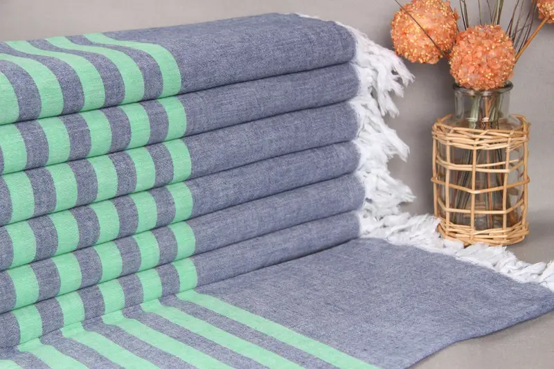 Turkish Bath Towel, woven from high-quality organic Turkish cotton yarn, ensures durability and comfort. Measuring 36x71 inches (90x180 centimeters) with a tolerance of 2 inches (5cm) due to hand-weaving, the towel weighs 200 grams, resulting in a lightweight yet substantial texture. Embroidery options are available, allowing for personalization, and towels are pre-shrunk, ensuring a consistent fit. Orders over 35 USD receive free shipping, with delivery typically within 3-5 days. Returns and exchanges are accepted without hassle, with US order...