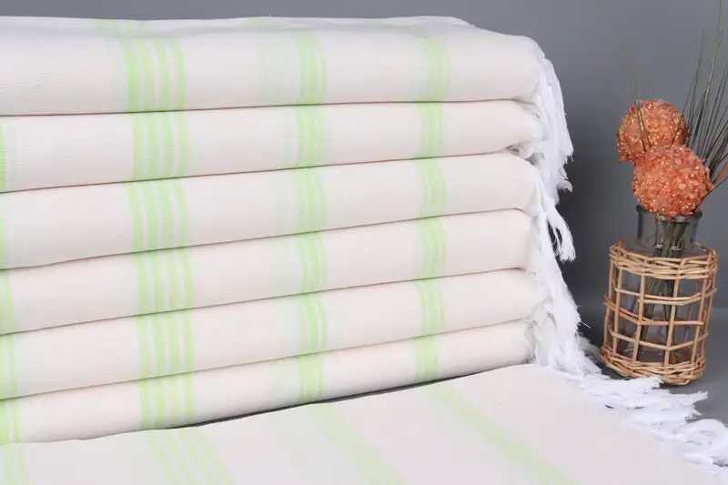 Organic cotton yarn ensures exceptional absorbency and durability. Characterized by a size of 40x71 inches (100x180 centimeters) with a tolerance of 1-2.5 cm due to hand-weaving, the towel weighs 310 grams. Customization options include embroidery of names or logos, with free shipping for orders over 35 USD. Pre-wash is recommended for optimal softness. Orders can be returned or exchanged hassle-free. Fulfilled from either the US or Turkey based on order location.
