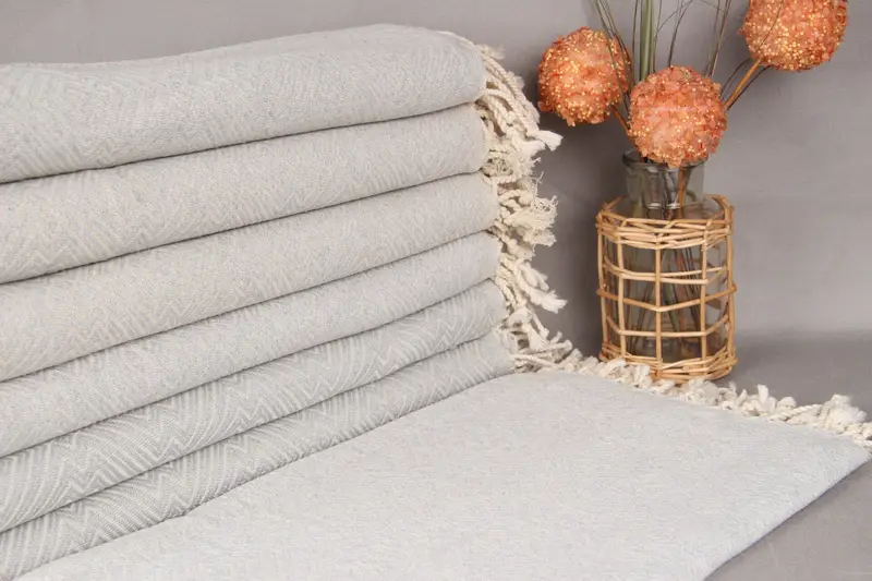 The Turkish towels are woven with organic cotton yarn, ensuring a sustainable and high-quality material. Resulting in a 40x75-inch (100x190-cm) towel with a weight of 400 grams, these towels exhibit tolerances of up to 2 inches (5 cm) due to hand-weaving techniques. Embroidery customization options, pre-shrunk status, and a worldwide shipping policy that offers free shipping for orders over 35 USD are available. Returns or exchanges are accepted without hassle, ensuring customer satisfaction.