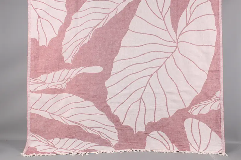 Organic cotton yarn ensures optimal absorbency and softness in this beach towel. Characterized by its 40x67 inches dimension and 300 grams weight, it accommodates a tolerance of 2 inches in size due to hand-weaving techniques.