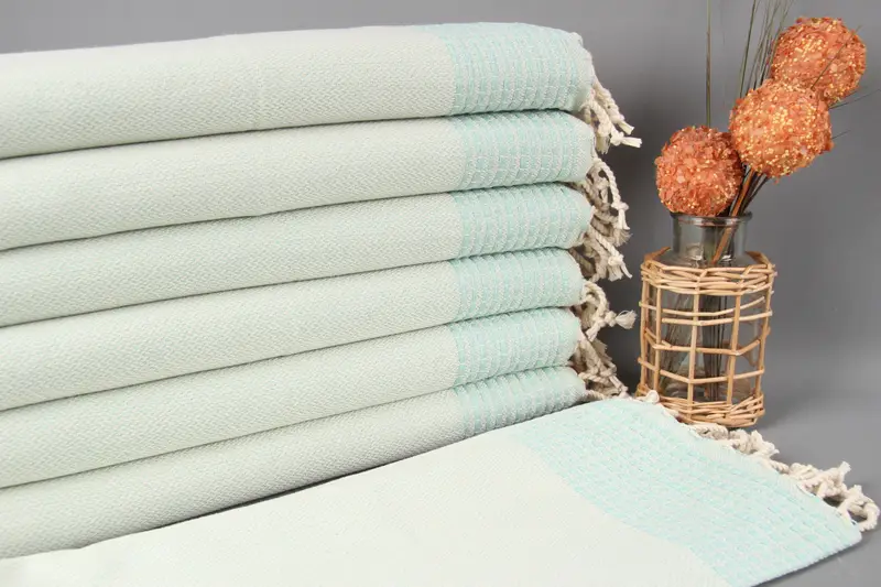 Hand-woven with organic Turkish cotton yarn, the towel ensures softness and durability, resulting in an ideal kitchen or spa accessory. Characterized by dimensions of 20x40 inches (50x100 centimeters) with a tolerance of up to 2 inches (5 centimeters), this 120-gram towel exemplifies meticulous craftsmanship. The pre-shrunk status and customization options, including embroidery, facilitate a personalized touch, while international shipping and a hassle-free return policy enhance the overall user experience.