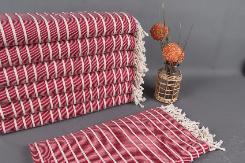 Organic cotton fiber composition ensures absorbency and softness, resulting in a towel that becomes softer with each wash. Characterized by a size of 40x71 inches (100x180 cm) with a tolerance of 1-2.5 cm due to hand-weaving techniques, these towels weigh 360 grams, offering durability and versatility. Customers can choose from embroidery customization, pre-shrunk status, and swift shipping options, with worldwide delivery in 3-5 days and free shipping for orders over $35.