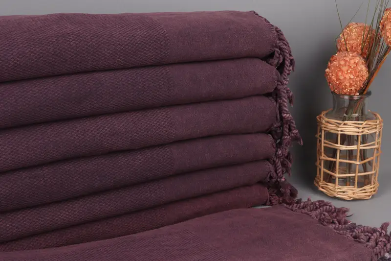 The Turkish beach towel is manufactured from high-quality organic Turkish cotton yarn, ensuring breathability and absorbency. Characterized by its dimensions of 32x71 inches (80x180 centimeters) with a tolerance of 2 inches (5 centimeters) due to hand-weaving, the towel weighs 300 grams. Each towel is pre-shrunk to maintain size consistency.