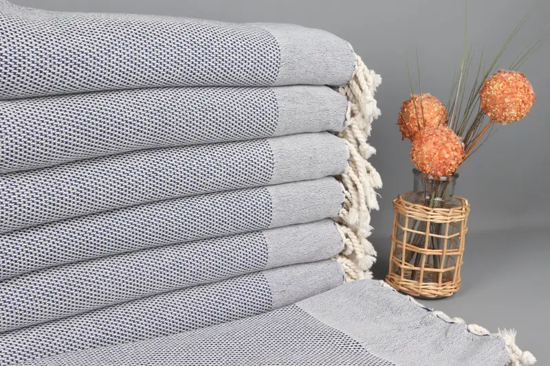 Crafted from organic cotton yarn, these Turkish bath towels ensure exceptional absorbency and softness. The towels measure 40x71 inches (100x180 centimeters) with a tolerance of up to 2 inches (5 centimeters) due to hand-weaving techniques, resulting in a weight of 390 grams. Customization options include embroidery for personalized gifts, with pre-wash recommended for optimal softness.