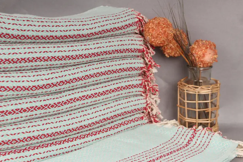 Turkish towels are characterized by their high-quality organic cotton yarn, ensuring superior absorbency and durability. Resulting in a towel that becomes softer with each wash, they weigh 400 grams and measure 40x71 inches (100x180 centimeters) with a weaving tolerance of up to 5 centimeters. Tolerances in dimensions are allowed up to 2.5 centimeters.