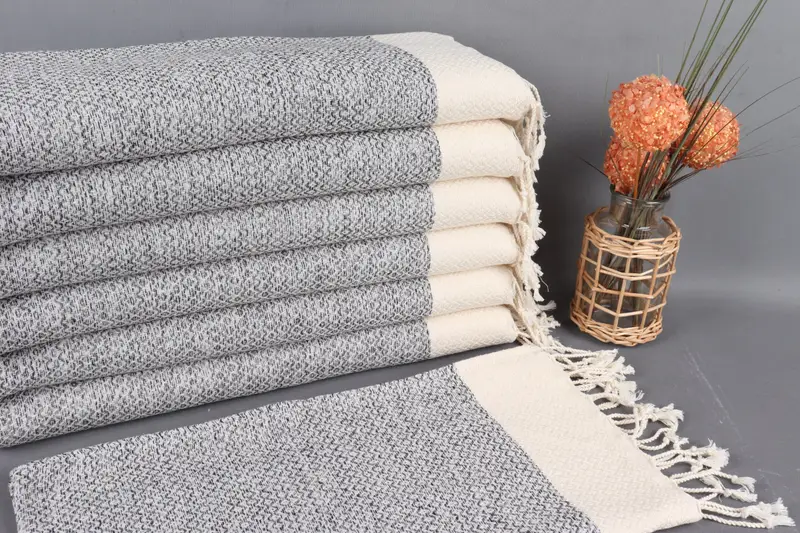 Organic cotton yarn defines the fiber composition of these Turkish tea towels, ensuring high absorbency and softness. Characterized by hand-weaving techniques, these towels maintain their properties on both sides. Resulting in multi-purpose utility, they come in dimensions of 20x40 inches (50x100 centimeters), with a weight of 122 grams. The hand-weaving process permits a size tolerance of 1-2.5cm.
