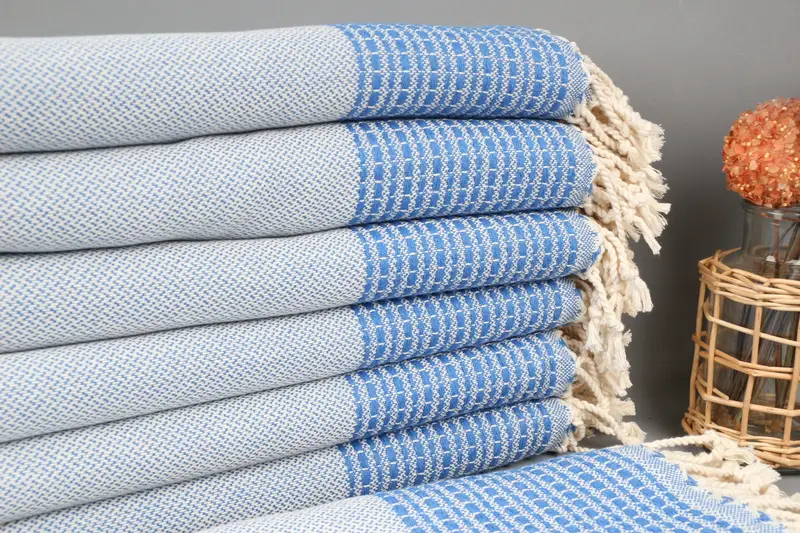 Characterized by high-quality organic cotton yarn, the Turkish beach towel exhibits superior absorbency, ensuring quick-drying and long-lasting freshness. Dimensions include 36x69 inches (90x175 centimeters), with a weight of 420 grams. Hand-weaving tolerances allow for slight variations of up to 2 inches (5cm).
