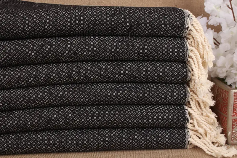 The fabric is crafted from pure organic cotton, ensuring exceptional absorbency and rapid drying. The bath towel's dimensions are 38x63 inches or 95x160 centimeters, with a weight of approximately 380 grams. Hand-weaving tolerances are ± 2 inches or 5 centimeters.