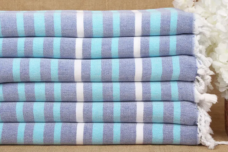 Characterized by superior fiber composition, the beach towel is constructed from pure organic cotton, ensuring a high level of absorbency and rapid drying. Each towel is meticulously hand-woven, resulting in dimensions of 40x71 inches, which converts to 100x180 centimeters, with a tolerance of ±2 inches or 5 centimeters due to manual weaving. The product weighs approximately 280 grams.