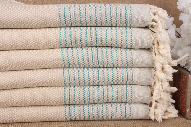Turkish cotton towels, characterized by their multi-purpose utility, are produced from 100% organic cotton, ensuring exceptional absorbency and quick drying. These towels weigh approximately 360 grams and are meticulously woven to a standard size of 40x63 inches, equivalent to 100x160 centimeters, with allowable variations of up to 2.5 centimeters due to the weaving process. Customization options include monogram embroidery, allowing for personalization of gifts or event favors. Ensuring satisfaction, these towels are pre-shrunk, and orders ove...