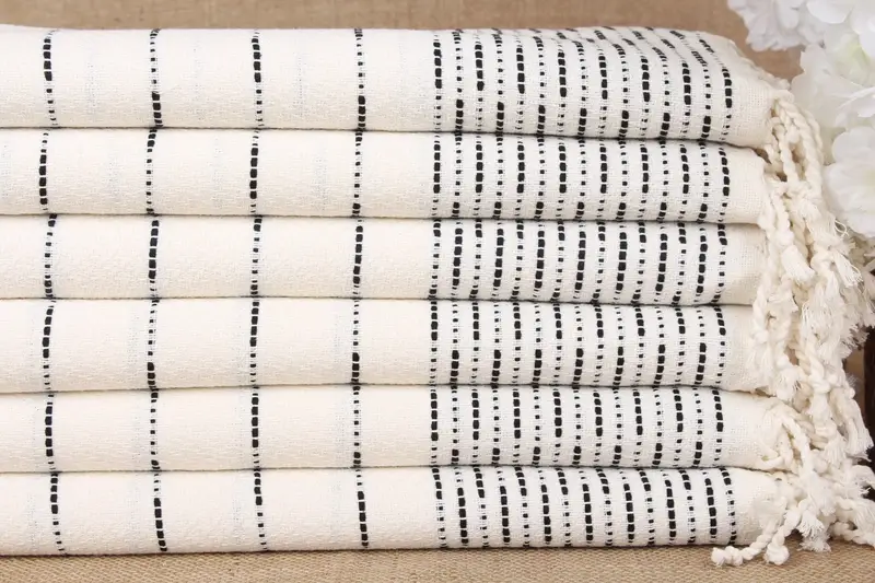 Characterized by pure organic cotton composition, the beach towel ensures exceptional absorbency and quick drying properties, resulting in an optimal utility for various purposes. Measuring 38x71 inches or 95x180 centimeters, this high-quality towel weighs approximately 420 grams, allowing a tolerance of ±2 inches or 5 centimeters due to the weaving process. Tailored for personalization, these towels can be embroidered with a monogram, offering a unique touch to the product.
