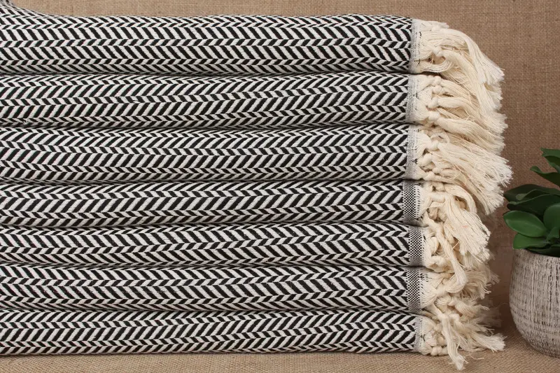 Comprised of pure organic cotton, the Turkish towels ensure high absorbency, providing quick drying. Resulting in a lightweight and flat-woven texture, they are optimal for travel purposes. Measuring 40x71 inches or 100x180cm with a tolerance of ±2", these towels weigh approximately 450 grams.