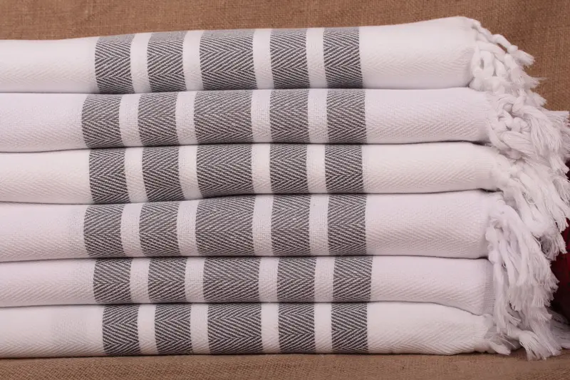 The Turkish Towel is characterized by its 100% Turkish cotton yarn, ensuring maximum absorbency and quick drying. Resulting in a versatile product, it is double face knitted and suitable for various purposes such as kitchen, bath, and beach use. The towel measures 40x71 inches (100x180 cm) with a weight of approximately 380 grams, and it has a weaving tolerance of ±2" (5 cm).
