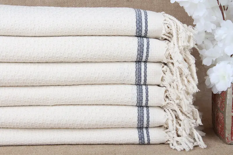 Characterized by its pure organic cotton composition, the towel is highly absorbent, ensuring rapid drying. With a weight of approximately 440 grams, its dimensions are 67x36 inches (170x90 cm), featuring a hand-weaving tolerance of ± 2 inches (5 cm).