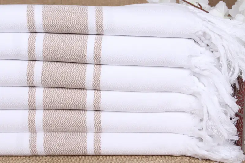 Organic cotton fibers ensure high absorbency and quick drying, making these towels ideal for various uses. The towels are characterized by their 40x71 inches dimensions and a weight of approximately 290 grams. These properties are ensured through precise hand-weaving techniques, allowing for a tolerance of ± 2 inches or 5 centimeters in size.