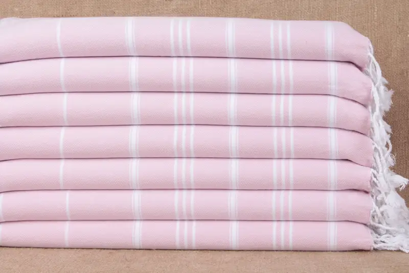 Produced from pure organic cotton, these Turkish hand towels are characterized by their high absorbency and quick drying properties. Ensuring comfort and versatility, the towels are handmade through double face knitting, resulting in a multi-purpose utility suitable for kitchen, bath, and travel applications. Each towel measures 22x40 inches or 55x100 cm with a weight of approximately 100 grams. Weaving tolerances of ±2 inches or 5 cm may occur.