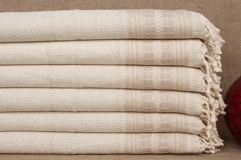 Characterized by eco-friendly properties, the dish towel is made of pure organic cotton, ensuring superior absorbency and quick drying. This hand-woven item exhibits dimensions of 20x40 inches or 50x100 cm, with a tolerance of ±2 inches or 5 cm due to the weaving process. Weighing approximately 120 grams, it provides a balanced blend of lightweight and durability.