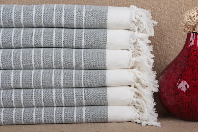 Ensuring durability and optimal absorption, Turkish cotton towels are crafted using pure organic cotton fibers. Resulting in a towel weight of approximately 406 grams, these towels measure 39x65 inches or 98x165 centimeters, with a weaving tolerance of ± 2 inches or 5 centimeters. Characterized by double-face knitting, these handmade towels are suitable for various purposes.