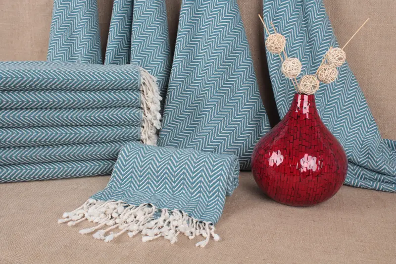 Characterized by its pure organic cotton composition, the towel ensures optimal absorbency and quick drying properties. Comprised of 100% Turkish cotton yarn, it is eco-friendly, handmade, and suitable for multiple uses. Measuring 40x71 inches or 100x180 cm with a tolerance of ± 2 inches or 5 cm, the towel weighs approximately 410 grams.