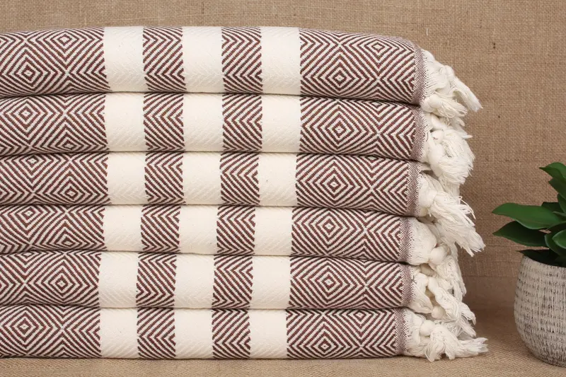 Pure organic cotton towels, characterized by high absorbency and rapid drying, ensuring an optimal user experience. The material comprises 100% Turkish cotton yarn, resulting in a towel weight of approximately 100 grams. Each hand towel measures 20x32 inches or 50x80 centimeters, with a hand-weaving tolerance of ±2 inches or 5 centimeters.