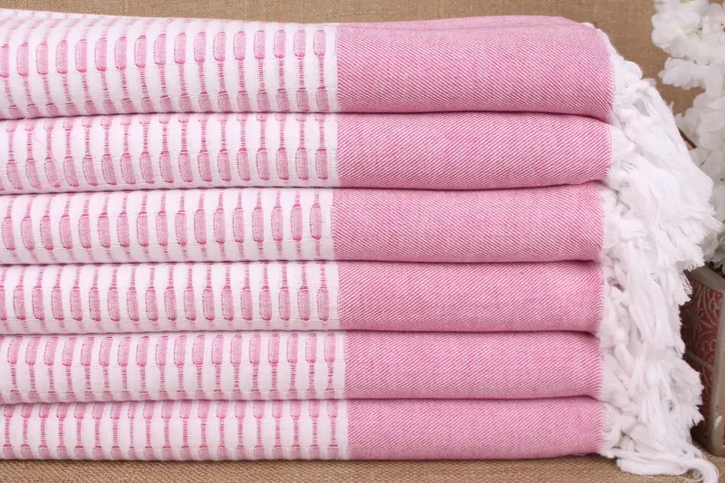 Ensuring precise measurements, the towel is 100x180 centimeters and features hand-woven details that allow it to be used for multiple purposes. Each piece is pre-shrunk and can be further personalized with an embroidered monogram or custom design.