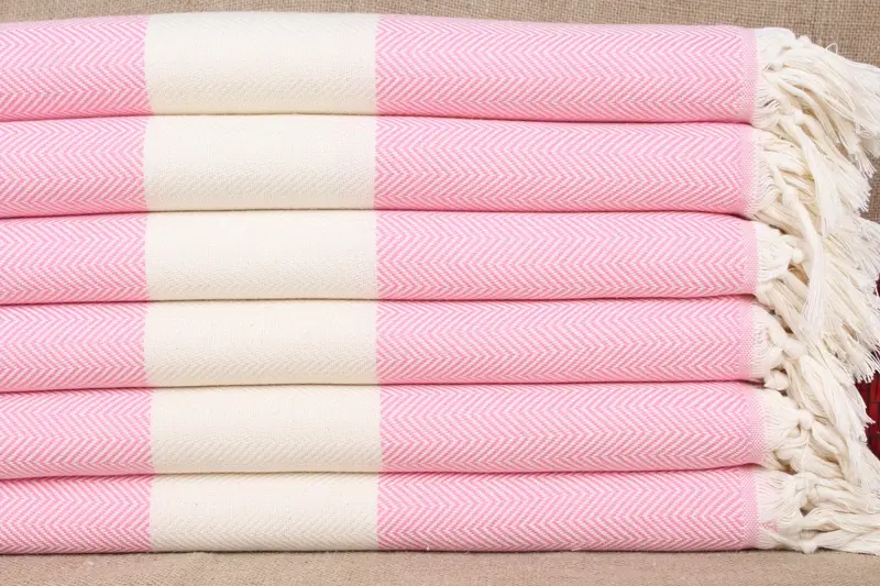 The organic beach towel is characterized by its double-face knitted composition from pure 100% Turkish cotton yarn, ensuring exceptional absorbency and quick drying. The towel dimensions are 40x71 inches, translating to 100x180 centimeters, with a slight weaving tolerance of ±2 inches or 5 centimeters. This results in a towel weight of approximately 430 grams, providing a balance between portability and utility.