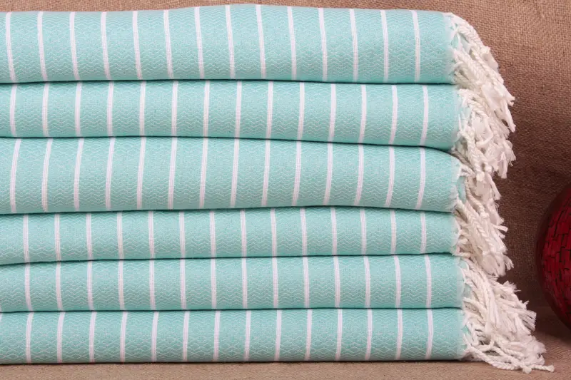 Materials of the Turkish towels ensure high absorbency and quick drying, characterized by pure organic cotton. The fiber composition is made from 100% Turkish cotton yarn, ensuring the towels are lightweight and soft. Absorption capabilities result in towels becoming softer with each wash.