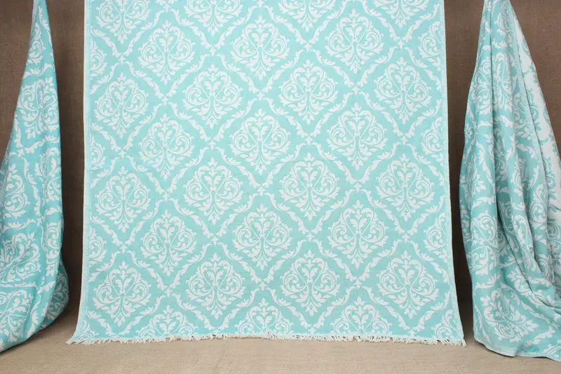 The product, characterized by Turkish cotton, showcases high absorbency and quick drying properties. Fabricated from pure organic cotton, the towel ensures excellent moisture-wicking capabilities, resulting in soft and lightweight performance. The weight of the towel is approximately 340 grams, while its dimensions measure 36x67 inches or 90x170 centimeters. Hand-weaving tolerances allow for slight variations of ± 2 inches or 5 centimeters.