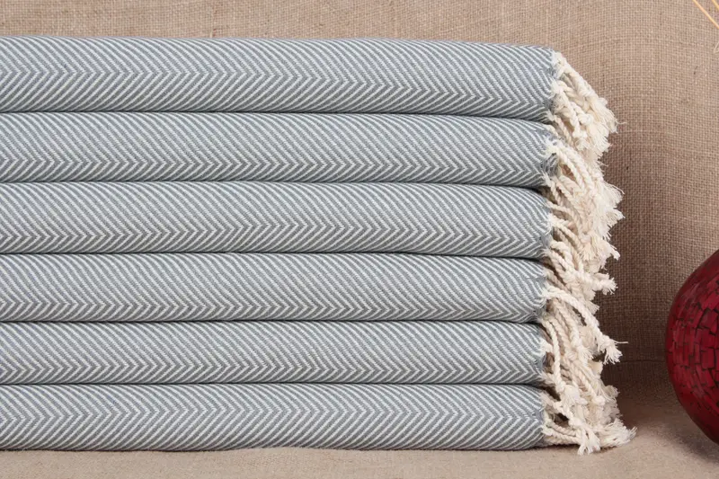 Turkish hand towels are distinguished by their composition of pure organic cotton, ensuring high absorbency and quick drying. These towels, characterized by a weight of approximately 100 grams, feature a size of 20x40 inches, equivalent to 50x100 centimeters. Weaving tolerances may result in size variations of up to 2 inches or 5 centimeters.