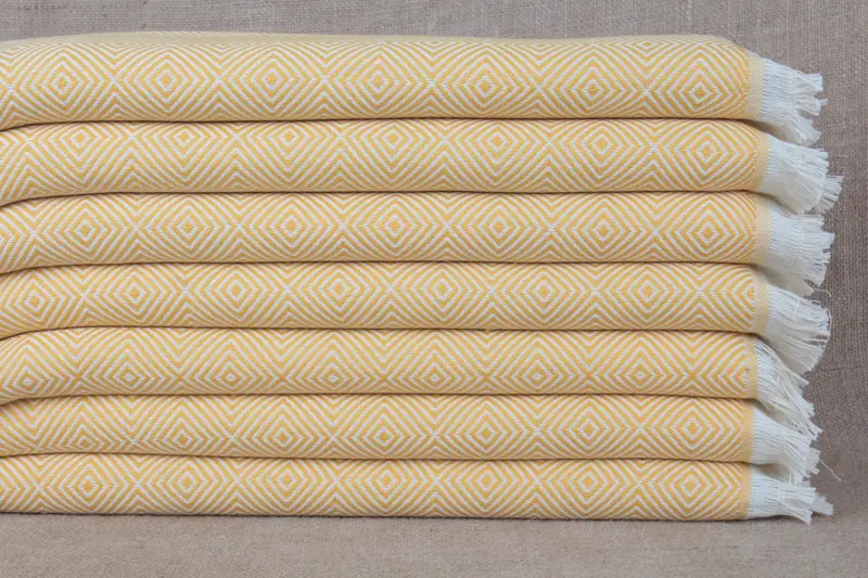 Pure organic cotton characterizes the towels, ensuring high absorbency and quick drying. The dimensions of this Turkish hand towel are 20x28 inches or 50x71 cm, with a tolerance of ±2 inches or 5 cm due to hand-weaving. Each towel weighs approximately 120 grams.