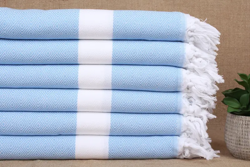 The beach towel is characterized by its high-quality pure organic cotton composition, ensuring both high absorbency and quick drying. These towels have dimensions of 40x71 inches, equivalent to 100x180 cm, and a weight of approximately 360 grams. Weaving tolerances allow for variations of up to ±2 inches (±5 cm).