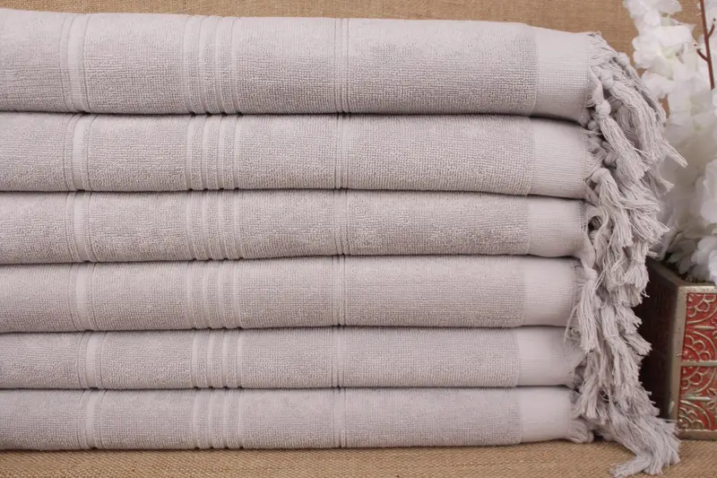 Pure organic cotton fibers are utilized ensuring exceptional absorbency and quick drying. This Turkish beach towel features a weight of approximately 420 grams, offering a luxurious texture while being double-face knitted. Each piece exhibits a size of 70x36 inches or 90x180 cm, with a hand-weaving tolerance of ± 2 inches or 5 cm.