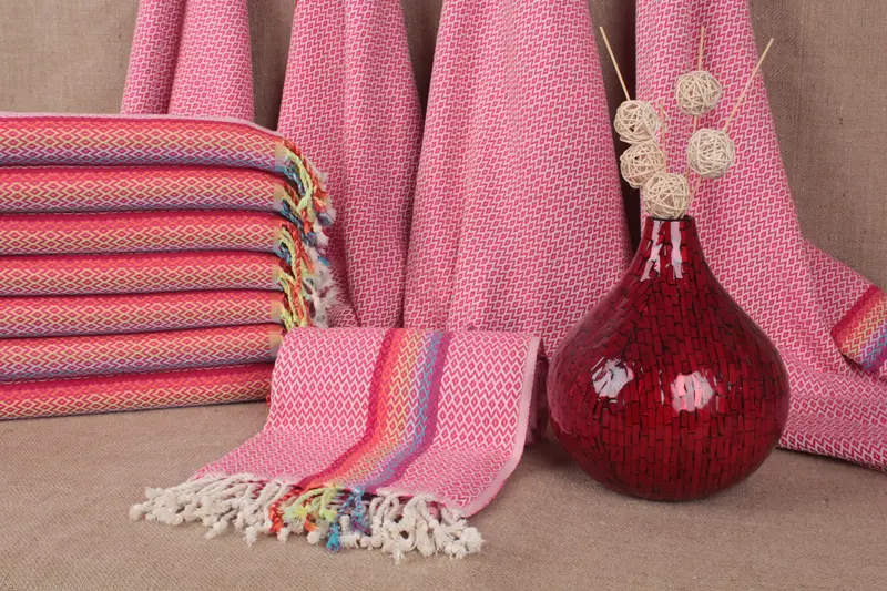 The product features pure organic cotton, ensuring high absorbency and quick drying. Characterized by a dimension of 40x71 inches or 100x180 centimeters, these towels weigh approximately 410 grams with hand-weaving tolerances of ±2 inches or 5 centimeters. Customization options include embroidery or monogramming, along with pre-shrunk status. International orders benefit from free shipping over $35, with delivery times of 2-5 business days via DHL EXPRESS or FedEx. Return policies are provided for non-customized items, ensuring customer satisfa...