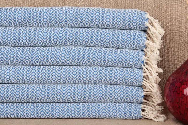 Comprising pure organic cotton, the kitchen towel is renowned for its high absorbency and rapid drying properties, ensuring a premium quality product. Resulting in a towel that measures 20x40 inches or 50x100 centimeters, this item weighs approximately 100 grams. Tolerances in size due to hand weaving can be up to 2 inches or 5 centimeters.